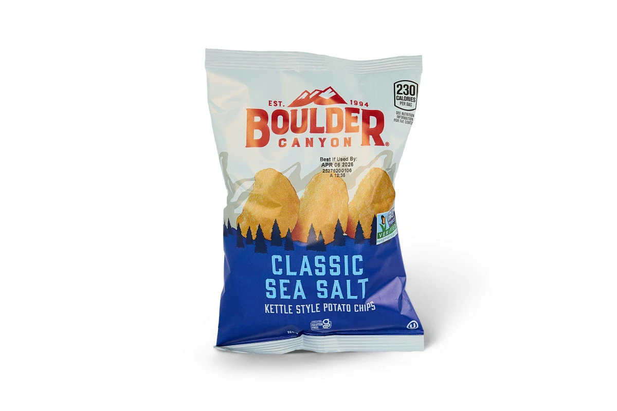 We carry assorted varieties of Boulder Kettle Cooked Chips: BBQ, Salt & Vinegar, JalapeƱo-Cheddar, and Sea Salt.