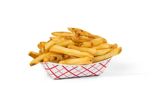 1/4 in. cut, skin on, fried fresh to order. Side of Fries for $3.99 or Ball of Fries (feeds 3-4 people) for $9.99.