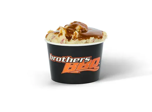 Mashed skin-on red potatoes topped with hearty beef gravy.